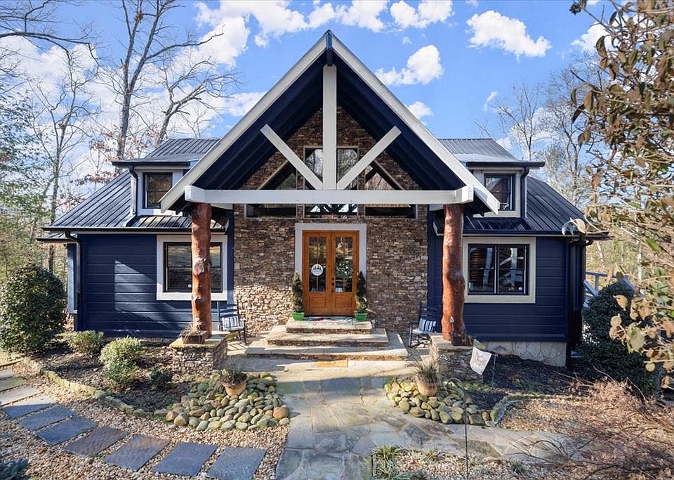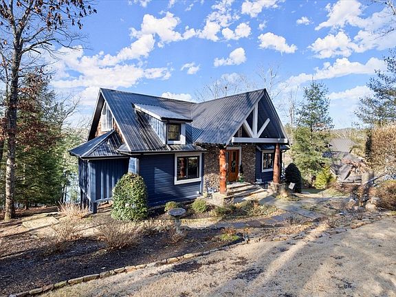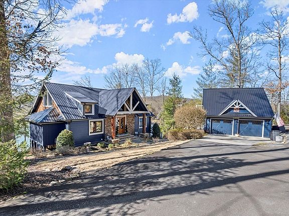 Lakefront Luxury on Nottely Lake this Stunning Craftsman Style Ranch with Finished Basement & Deep-Water Double Boat Slip! Escape to your lakefront dream home in Blairsville. This breathtaking ranch sits on a full finished basement and offers 130 feet of pristine lakefront deep water access year around. Every detail in this home is designed for comfort, beauty, and lakefront living at its finest. As you enter the 2-story foyer, you are greeted by a wall of windows with lake and mountain views. The open concept floor plan captivates you with a soaring vaulted ceiling in the great room with wood beams, stacked stone fireplace and amazing views. The gourmet kitchen features a custom red Viking 6-burner duel fuel range, a Viking second wall oven, Viking microwave, stacked stone breakfast bar, back splash, vent hood and stone countertops. Whether an evening dinner or entertaining, the dining room features lots of windows with views of the lake & mountains, not to mention the amazing sunset view. An oversized master suite with vaulted ceiling includes access to the upper deck with a separate covered sitting area, the perfect spot to sunbath and a custom walk-in closet. The master bathroom has a double vanity, make-up vanity, a large shower with a stacked stone waterfall and a copper soaking tub. Spacious secondary bedroom and an additional full bath are found on the main level. All closets are custom designed. Expansive laundry room has tons of extra storage cabinets. Built-in desk and a utility sink to complete the main level. The finished terrace level features a family room with stacked stone fireplace, wet bar and oversized windows for continual views of the lake and mountains. You will find 2 more bedrooms and an additional 2 full baths. A third flex room can be used for another bedroom or office. Two expansive covered decks span the full length of the home and are an entertainerCOs dream. Snuggle up on the upper level enjoying a wood burning fireplace as you unwind from the day or hosting a dinner party with plenty of space. The screened section of the upper deck is the perfect outdoor dining space. The lower deck provides additional space to relax and swing while enjoying the lake and mountain views. A crafted stone walkway leads to the large stone patio with a fire pit and continues to the double boat slip dock with 2 boat lifts and a sun deck above. This home blends rustic charm with all the modern luxuries while offering the unmatched lake & mountain views from every single angle. Whether you are unwinding by the fire, entertaining in style or setting out for a day on the water, this is the perfect place to call home. Schedule your private tour today and start living the lakefront lifestyle!