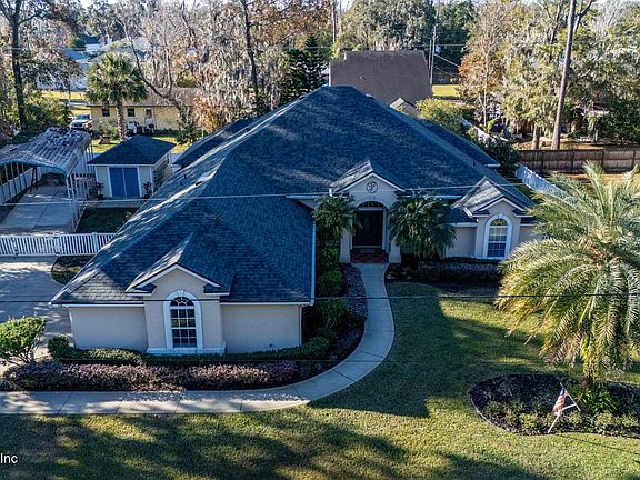 The impeccable curb appeal and large lot will be sure to capture your attention at this well-maintained Fleming Island home with no HOA or CDD fees! NEW ROOF January 2024. The inviting foyer welcomes you with double tray lighted ceilings and custom crown molding throughout the home. The open floorplan allows for easy living and entertaining. The kitchen overlooks the family room and features stainless steel appliances, 42'' cabinets and granite countertops with breakfast bar. The light and bright living room includes custom built-in shelving/entertainment center. The split floorplan allows for privacy in the primary suite. A lovely bay window and upgraded carpet (less than a year old) add to the charm. The spacious en suite bath with separate garden tub and large shower includes a rain shower head and bench for a spa-like feel. The double walk-in closets provide ample storage. On your way to the large screened patio, you will find a convenient half-bath with exterior door which is great for guests. The patio is equipped with plumbing and electrical hookups for future summer kitchen. Bring all your toys to this home offering an oversized attached 2 car garage, large driveway with covered RV/boat parking. In addition, there is a detached workshop with power and A/C unit for all of your hobbies. Enjoy all of this in the highly desirable location of Fleming Island within a few minutes to the nearest boat ramp (Knight's Marina) and tons of shopping and restaurants. Very close to NAS/Jax and the new expressway which provides access to the Jacksonville and surrounding areas. Schedule your showing today.