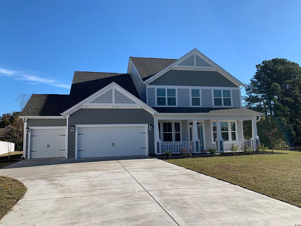 This fully loaded Ivey Arts & Crafts home surrounded by water views is located on a quiet cul de sac in the back of the community. The spacious lot (.43 acre) easily accommodates the 3-car garage and a future backyard oasis. This Ivey boasts a generous front porch with an inviting foyer. the foyer features 2 pieces of crown molding, chair rail and picture molding, and a transom window over a gorgeous decorative glass front door framed with a sidelight. The Reserve trim package adds coastal charm with 7.25 baseboards and RB3 window and door casing throughout. The Dining room features chair rail, picture molding, and a marvelous coffered ceiling; a real WOW factor when you enter this home. The Study offers a quiet retreat with French doors, crown molding, and lots of light. Level 3 wood-look tile by Daltile is a marvelous low maintenance enhancement though out the first floor of this lovely home. Flagstone Level 3 Aristocraft cabinets by Master Brand add flair to the Gourmet Kitchen with crown molding and glass mullions. The spacious kitchen boasts a Butler's pantry, stainless steel Whirlpool kitchen appliances (wall oven/wall microwave, natural gas cooktop, and dishwasher), an exterior vented Whirlpool stainless steel hood over the Whirlpool cooktop, a Kohler stainless steel apron sink, under cabinet lights, a decorative glass pantry door, wooden pantry shelves, soft close cabinet doors/drawers, and a wine rack. Progress Lighting Staunton Pendants in brushed nickel add style and additional light over the large Kitchen Island. Level 2 Blue Torencino granite Kitchen counter tops and Grey Glossy Vitruivan backsplash tile add Coastal flair to this chef's kitchen. The Kitchen is open to the Great room. The Great room boasts soaring ceilings open to the loft and a large 4-panel sliding door that open to the back covered porch. The large laundry room includes a utility sink. The spacious Primary bedroom features a gorgeous bay window, a tray ceiling, a fabulous walk-in tile spa shower with brushed nickel Moen plumbing fixtures, a double vanity, Level 2 cabinets, 2 large walk-in closets, and a private water closet. The second level of this home is accessed by iron balusters and stairs with oak treads. The second level boasts 3 bedrooms, 2 full baths, and a loft. One of the upstairs bedrooms includes an en suite bath. Other incredible upgrades include: brushed nickel Progress Light fixtures, brushed nickel bath accessories, gutters, a natural gas tankless Rinnai Water Heater, Sherwin Williams painted ceilings in White and walls in Agreeable Gray, a fully sodded home site with foundation trees and shrubs, and a lawn irrigation system. This home is Energy Star Certified with Aerobarrier. Belle Mer amenities include a premier location between Myrtle Beach and Murrells Inlet (less than 3 miles to the beach, across the street from 3 large shopping/dining venues) a community pool, clubhouse, exercise room, sidewalks, and fishing and non-motorized boating lakes.