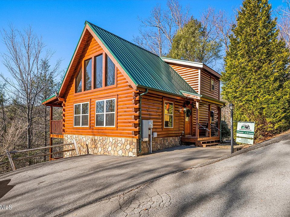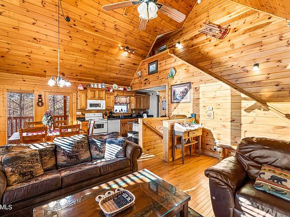 Beautiful, 1 owner cabin located in sought-after Black Bear Falls Resort! Just minutes from downtown Gatlinburg, this beautiful, well-kept, 3 bedroom, 3 bath cabin boasts 2,050 sq.ft. of living space inside, as well as 2 spacious, covered decks to enjoy the beauty of the Great Smoky Mountains! As you enter into the cabin's open living area, you'll immediately notice the soaring 20 foot ceilings, double height wall of windows and stacked-stone natural gas fireplace. The open kitchen/dining features granite countertops and an island with bar seating. The lower level's game room/second living area is designed for fun and entertainment! Countless hours can be spent enjoying the professional pool table, MultiCade arcade or relaxing on the sofa in front of the TV. Or spend an evening under the stars in the outdoor hot tub, located on the lower deck. Each of the cabin's oversized bedrooms can be considered primary suites with full, en-suite bathrooms. As part of Black Bear Falls Resort, you'll have access to the clubhouse and heated adult and kids' swimming pools. Cabin has been recently stained. $90K projected revenue.