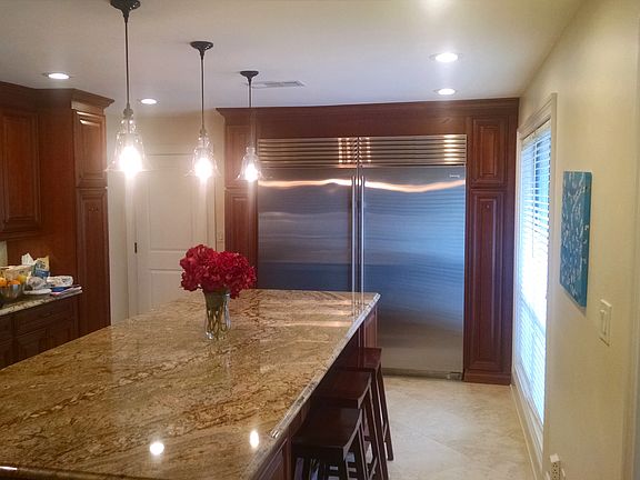 Fully renovated Interior with gourmet chef's kitchen, sub-zero 36" fridge, 36" freezer, wine and beverage centers, dual Bosch premium dish washers, Wolf 4 burner range with double griddle and double oven. New hardwood and tile in living areas and new premium grade carpet in bedrooms. Granite counters in kitchen and all bath rooms. Kohler toilets and faucets. New Masonite solid core doors and Baldwin door hardware. Travertine tiled master bath with frameless glass shower and dual shower heads. His and Her master bedroom closets with complete Elfa closet systems in both. Dual fire places in living room and den. Den has built in surround sound speaker system.