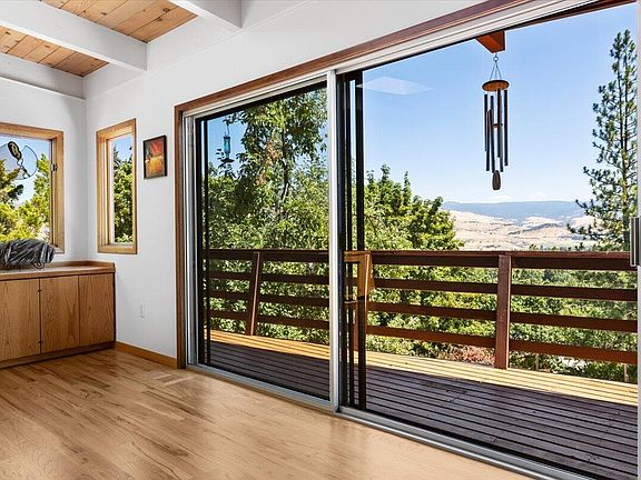 Experience breathtaking views of Grizzly Peak from this beautiful ''above the boulevard'' Ashland hills home. Skylights and large windows flood the open-concept living space with abundant natural light. Upstairs features 3 beds and 2.5 baths along with an updated kitchen with granite counters, updated lighting, stainless steel appliances, gas range and a pantry. The spacious primary bedroom offers a walk-in closet and a renovated bathroom with a walk-in shower. Beautifully refinished hardwood floors and fresh interior paint make this home truly shine. A large deck overlooks a terraced and fenced garden with established fruit trees and a rain catchment tank for extra irrigation. Downstairs offers the option of a separate entry leading to a 1 bed, 1 bath unit with an office, a kitchenette and a deck with fantastic garden and mountain views. This space is ideal for guest quarters or multi-generational living. Book your tour today!
