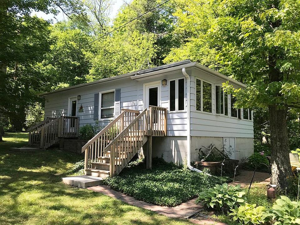 This charming waterview cottage in the Isle View Condominium will make an ideal, affordable Door County getaway with shared shorefront and a permanent pier/marina. The home's layout includes two bedrooms and one bath, plus an open concept living area and a kitchen with a full array of appliances. The cottage was enhanced with a replaced foundation with great basement storage and the enclosure of a porch into a bright, cheery sitting room open to the rest of the living area. The living room and kitchen feature hardwood floors and beamed, paneled ceilings for that cottage charm, while the sitting room has a vaulted ceiling and tile floors. The on-site dock is is slated for an already funded repair. Rentals are discouraged in this association.
