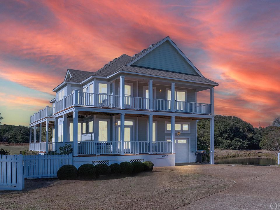 Welcome to "Ace by the Beach," an exquisite property situated on the 4th fairway of the prestigious Reese Jones designed Currituck Club golf course. This stunning home offers panoramic views of the golf course and a tranquil pond, providing a picturesque backdrop for beach living. Nestled within the coveted Hammocks of the Currituck Club, residents and guests enjoy an array of exclusive amenities, creating a resort-style living experience. The Currituck Club, renowned for its outstanding golf course, offers not only golf enthusiasts but also nature lovers a unique living experience. Owners and guests of "Ace by the Beach" have access to a range of amenities, including sound access, multiple outdoor association pools (including one exclusively for the Hammocks), outdoor tennis and pickleball courts, basketball courts, sand volleyball, a playground, a clubhouse, a fitness center, shuffleboards, a bocce ball court, and a convenient trolley system running from Memorial Day through Labor Day to various points within the Currituck Club and the beach access. The Hammocks association goes above and beyond by handling lawn maintenance, ensuring that the property requires minimal upkeep, allowing owners to fully enjoy the resort-style living without the hassle of extensive maintenance. Upon entering, you are greeted by an open foyer that sets the tone for the rest of the home. The top level features a spacious open den and kitchen with cathedral ceilings, a gas fireplace, and expansive windows that flood the space with natural light. Two separate sun decks on this level provide the perfect vantage point to appreciate the breathtaking surroundings. The top level is completed with a convenient half bath and a generously sized primary bedroom featuring a walk-in closet and a spacious bathroom with a double sink vanity, a soaking tub, and a stand-up shower. The lower level offers three additional bedrooms, two full bathrooms, a laundry room, and a one-car garage. This level is thoughtfully designed to provide comfortable living spaces for family and guests alike. Step outside to a lovely screened-in porch and several decks, offering ideal spots to relax and savor the beauty of the Currituck Club. Notable updates include a top level HVAC in 2022, New Dryer 2023, and 3 new TVs in 2023. Make Ace by the Beach your next primary residence, second home, or investment property. The owners have successfully utilized the property as a rental, with prime weeks reserved for their own enjoyment. Contact agent for rental projections and seize the opportunity to experience coastal living at its finest in this exceptional Currituck Club property.