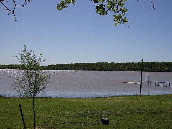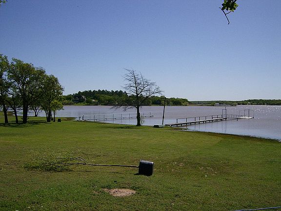 RARE! Corner 2.141 acre lot, Lakeside Land on Amon G. Carter Lake with well, private pier and boat ramp with septic system in place. Just 50 miles north of Fort Worth and 45 miles south of Wichita Falls, TX. Good candidate for amphibious plane ramp. Deer by in groups of 5, 7 and 9 in a group. Pear, peach and apricot trees with blackberry bushes too. Both sun and moon rise over the lake..."Amazing"! Old Cottage needs to be torn down. Perfect place to build your dream home. It will be stripped and ready for demolition. Will do demolition for additional fee. Map locations on Zillow is wrong. Ask for Covey @ 940-872-4376