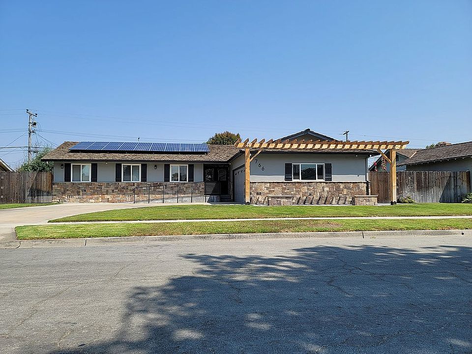 Recently completely redone with fresh paint, all in neutral colors. Large living room with updated modern fireplace. Kitchen has tile counters and lots of storage. Master bedroom has double closets, double sinks and large stall shower. Three additional good sized bedrooms. Fifth bedroom is a great office. The sixth bedroom is very private, off garage. It was properly done , with permits and is acceptable to use as a bedroom, office, or work out room. Hall bath has a tub/shower, also tiled. Double car garage with opener. Large fenced backyard. Front yard has sprinkler system. RV parking (with water and dump site) on side of house. New upgraded 200amp Solar ready service and electric vehicle charging station. Old insulation in the attic has been added too, R30 + old R13 = R43. In the sub floor R19 what a great job Coast Building products did. 5.76kw Allterra solar project complete. Go Green.. New add 46' X 34' stamped concrete patio.