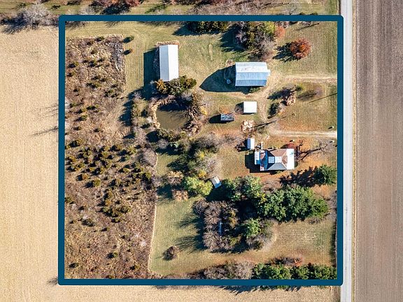 Discover the potential of this spacious 5-bedroom, 1-bathroom home offering 2,600 finished square feet and set on five peaceful rural acres. This property combines the charm of country living with valuable improvements and abundant storage options—perfect for hobby farmers, collectors, or anyone seeking room to grow. The home is equipped with central air and a gas forced-air furnace, ensuring year-round comfort. Major updates include a new shingle roof installed in 2024 and a well installed within the last 5 years, giving buyers confidence in two of the most important components of rural living. Outside, the acreage is complemented by a versatile collection of outbuildings. A classic hip-roof barn with 1,720 square feet offers excellent potential for livestock, equipment, or workshop use. An open-sided pole building with 1,800 square feet provides substantial covered storage for machinery, vehicles, or hay. Additional structures include two utility sheds for tools and supplies, along with a metal carport for convenient vehicle protection. Whether you’re looking to establish a homestead, expand your agricultural footprint, or invest in a property with strong improvement value, this acreage delivers opportunity in every direction.