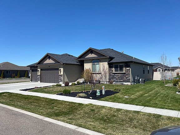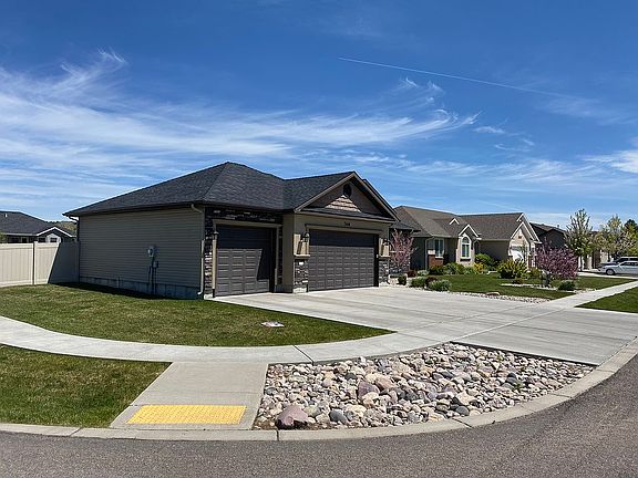 This incredible home has a ton of features, open floor plan, kitchen island, dining area off of kitchen, gas fireplace, master bedroom suite w/ master bath & tile shower, double sinks, large walk-in closet, gas heat, maintenance free siding, covered stamped patio to enjoy the summer BBQ's. The laundry room is loaded with cabinets. Granite counter-tops. The front Bdrm has 11 ft. ceilings, multiple storage closets. Vinyl fence, sprinkler system on irrigation water. Completely finished and move in ready with all these bells and whistles make this a house worth looking at. Call for your private showing.