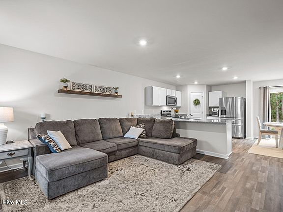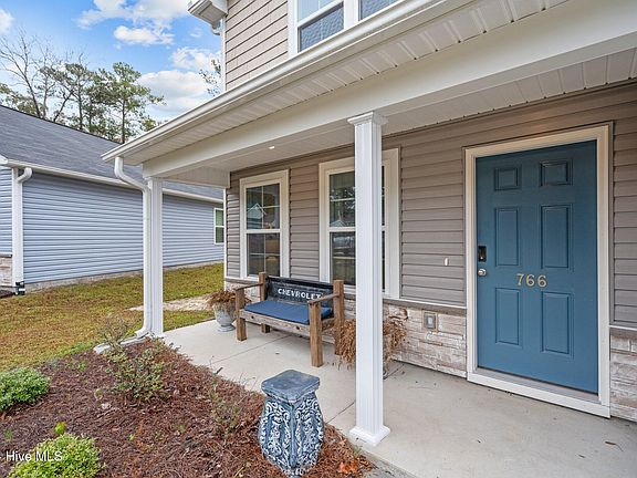 Welcome home to this spacious and stylish residence in the desirable Mill Creek Cove Community, offering fantastic amenities like a pool, clubhouse, and fitness center. Situated on a quiet cul-de-sac and just a short drive to Brunswick County's beautiful beaches, this home provides both relaxation and convenience. Step onto the charming covered front porch before entering the open-concept living, dining, and kitchen space. The kitchen features a pantry, gorgeous cabinetry, granite countertops, and stainless-steel appliances. The first floor includes a well-appointed bedroom and a full bathroom, perfect for guests or a private office. Upstairs, the primary suite awaits with a luxurious private bath boasting dual vanity sinks and a spacious walk-in closet. Two additional well-sized bedrooms share a full bathroom, while a versatile loft space offers room for a play area, home office, or media nook. A convenient laundry room completes the second floor. Enjoy a serene lifestyle with all the comforts of this thoughtfully designed home in an exceptional community!