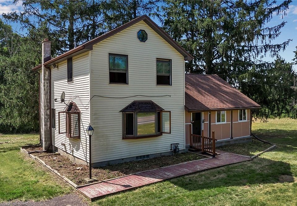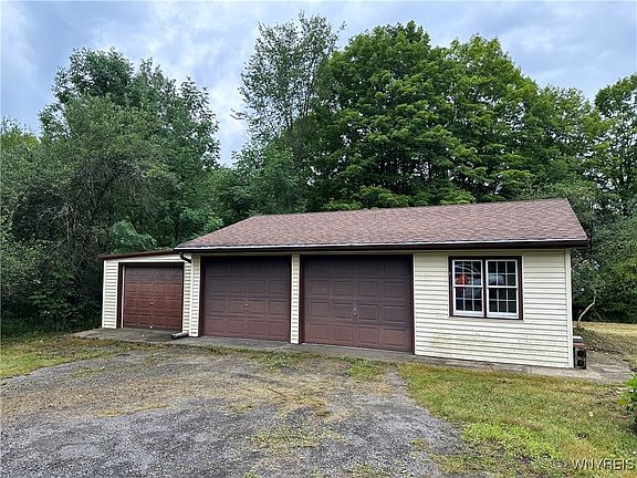 Alot of opportunity lies in this 3 bedroom/2 bathroom single family home on 11 acres of mostly wooded lot. West Falls is peaceful and secluded. Nice layout with 2 bedrooms upstairs and 1 downstairs. Full bathroom on each floor. Sliding doors off the kitchen leading out back. Electrical breakers with a high efficiency furnace. Enjoy a newer built 4 car detached garage. Tons of activities can be explored on the massive amount of property. Natural gas well on the land that is rented to National Fuel gives the property free gas all year round plus annual royalties.