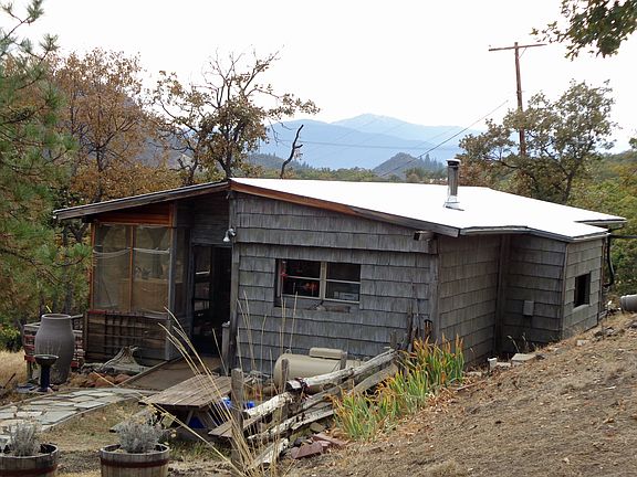 Awesome views of Mt. Ashland! Home sits among rolling hills surrounded by tall pine and oak trees, but the mobile home is of little value. The lot is south facing and great for gardening. Enjoy both sunrises and sunsets from the view deck. You will also find many usable out buildings, a seasonal creek and pond. Privacy galore. Purchase as a lot and replace the existing mobile and you have an amazing place to call home.