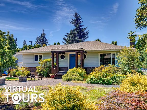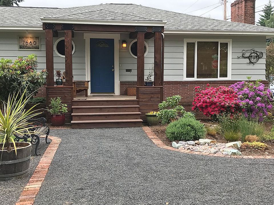 Beautiful, mid-century, 3 bed, 2 full bath updated home, 1/2 mile from St. John's Cathedral Park., enjoys a great location with a walk score of 80! This home, which is situated far back from the street, has been thoughtfully updated recently, and carefully maintained over the years. Customization, interior remodeling, and quality craftsmanship bring unique value to this house. Several liveable outdoor spaces make this home ready for Summer living in Portland! The size of the lot allows for plenty of parking and the potential for an ADU. After passing the masterfully-built craftsman front porch and entering into the open living area, you will notice the natural hardwood flooring, circular windows, and cozy, brick fireplace -- the area flows into the dining area and kitchen, which may also be conveniently accessed from the side of the home and downstairs. The kitchen features meticulously hand-built cabinetry, ample counter space, and updated, higher-end appliances. All three bedrooms are sizable, with two on the ground floor and one more in the basement with its own bathroom. The upstairs bedrooms enjoy a nice view of the backyard and have the same, natural hardwood flooring as the living and dining area. With an iron tub and shower, quartz vanity, and handsome wood paneling, the ground-level bathroom is centrally located and a place in the home you'll enjoy spending time. Outside, a xeriscaped patio with ample room for seating sits adjacent to the house's side and features a custom-built enclosure, originally built to house a hot tub. Other features: Solid Cedar plank siding, a 4th finished room, newer roof, Central A/C, detached two-car garage, forced air heating, storage shed. Nearby: Cathedral Park, Forest Park, Smith Lake, St John's/University Park Shopping and dining, easy access to I-5 and minutes from downtown. Buyer to verify all information, including ADU potential. HES 4, https://rpt.greenbuildingregistry.com/hes/OR10192581.pdf