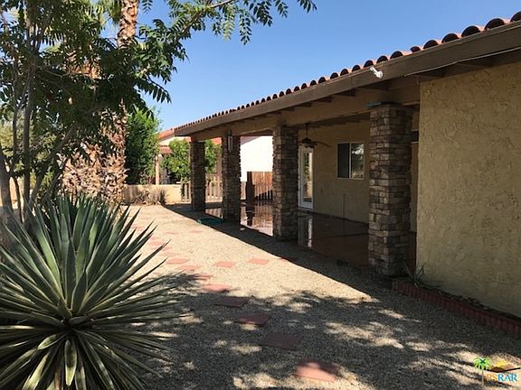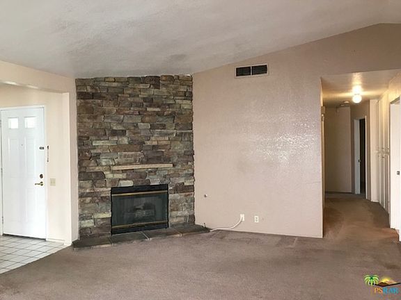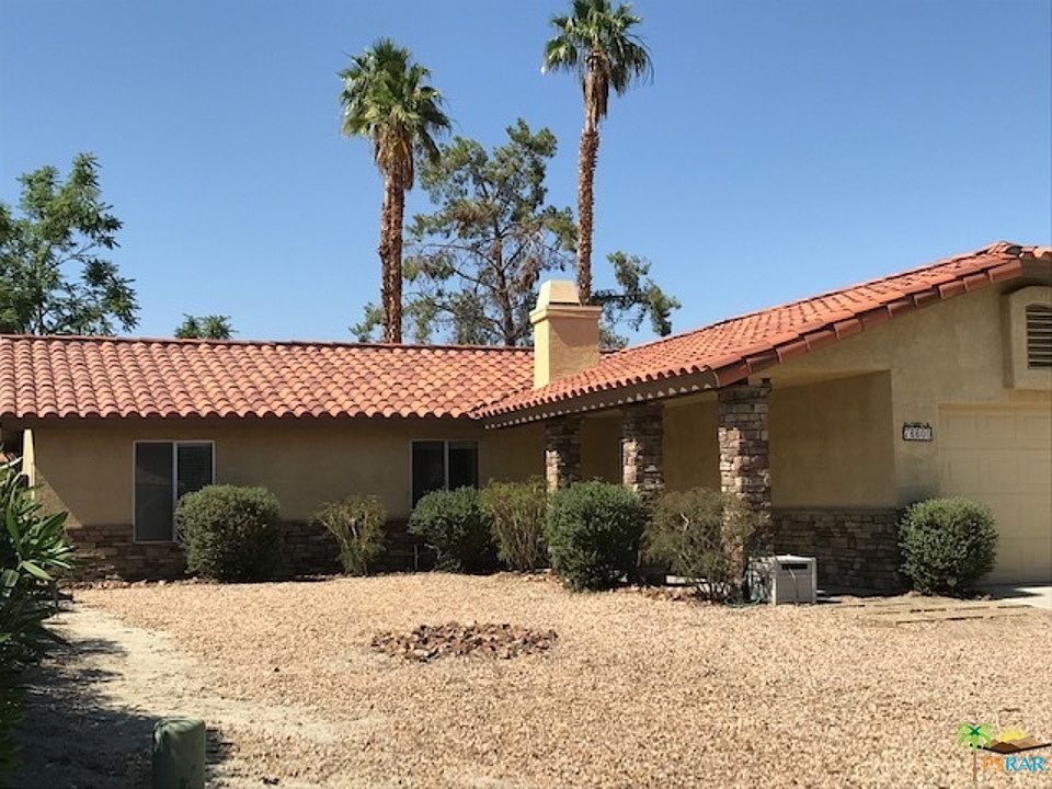 This home backs up to Palm Desert Country Club Golf Course and is a perfect starter home or investment property. Spacious home with kitchen overlooking the golf course, cathedral ceilings, stack stone fireplace in the living room, full three bedrooms, 2 full baths. Large master bedroom with slider to the back covered patio with fairway views. Newer HVAC, low maintenance landscaping, needs cosmetic fixes. It is rare to find a golf course home at this price with no HOA's! This one won't last long!