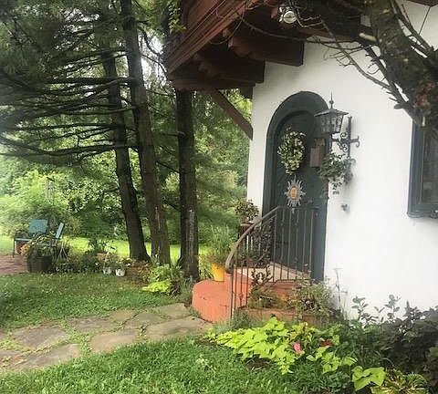 Bavarian Style Lodge Architecture. Handsome building was formerly used as an office but can be utilized as single family residence. First floor offers high ceilings, attractive raised hearth tile fireplace in Living Room/Waiting Room, dining room, two offices, eat in kitchen and full Bath. Second Floor consists of large family room, two bedrooms, Full Bath and two more offices. Lower level offers lots of storage space. This handsome home is an architectural treat and offers lots of exciting living space. Wonderful floor plan for work at home uses. Parking for 5 plus cars. Five minutes to Lake Nockamixon State Park with Doylestown approximately 11 miles to the South. If you're looking for something "Unique", you've got to make an appointment to come take a look. Available February 24th