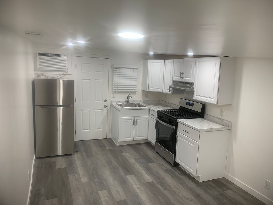Freshly painted studio that features new flooring, blinds and recessed lighting. Water, trash and electricity is included. Kitchen is completely new and has never been used, and includes a brand new full size gas stove/oven, large stainless steel sink with garbage disposal, stainless steel refrigerator, and new cabinets and countertops. In addition, there is a brand new A/C and heating unit with remote. The bathroom offers a large walk-in shower with a new toilet, light fixtures, shower head and vanity. Shared washer/dryer onsite in separate locked room with neighboring home. Private back patio area, and 2 sheds available for use onsite for extra storage, as well as designated parking. Conveniently located near downtown Lemon Grove, with restaurants, a winery and shops nearby. Public transportation is within walking distance, and easy on/off freeway access to Highway 94 and 125.