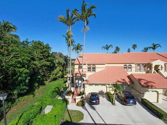 Wonderful 3/2 coach home with magnificent lake and golf course views. This corner home is light and bright with a lovely, open floor plan which includes vaulted ceilings and a large great room that will wow you! Lovely entrance with attached garage and stunning views through beautiful windows which line the entire back of this home. The inviting kitchen offers wood cabinetry and stainless steel appliances as well as a beautiful eat-in area with gorgeous view. All of the bedrooms are spacious as well and the master suite features a luxurious master bathroom with roman tub and separate shower. This home also offers a large laundry room with lots of cabinets for storage, located in a small, private, gated community within Palm Beach National Golf and Country Club. No membership equity! Close