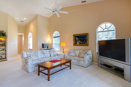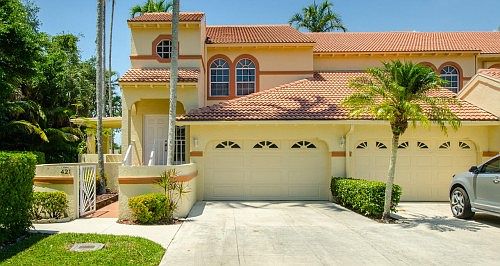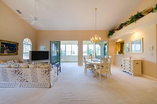 Walk into the living area and the view over the golf course (no membership required) will take your breath away. This incredibly spacious corner/end coach house feels like a single family home. The kitchen is beautifully finished with elegant wood cabinetry, stainless steel appliances and an eat-in area with a gorgeous view. At the end of a busy day, relax in silence and watch spectacular sunsets over the lake and golf course from your huge Florida room. Secluded location minutes to the Turnpike and an easy, straight drive to the beach. You must see this wonderful retreat-like home.