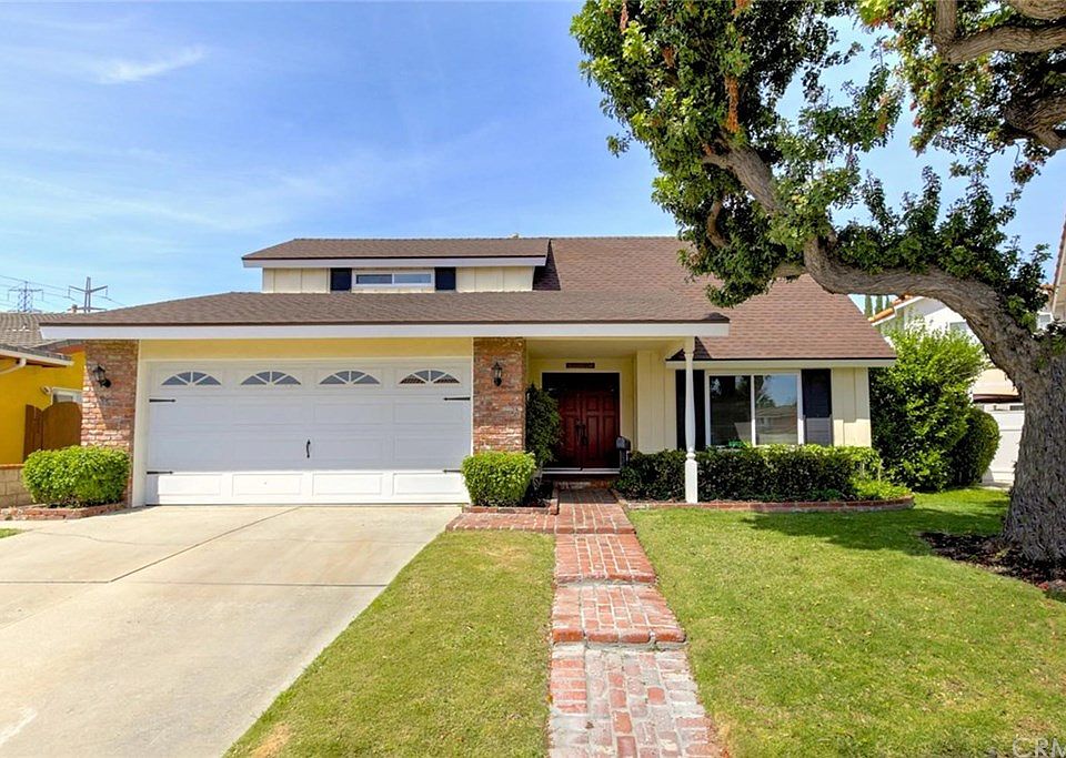 **BACK ON THE MARKET WITH NEW ROOF, NEW FURNACE AND NEW WATER HEATER!** With its darling curb appeal and dramatic roof-lines, this fabulous Ponderosa Home Plan 401 is one of the most sought after and popular models in La Palma. Located South of Houston, this East-facing home features 4 bedrooms, 2.5 baths, 2,088 square foot and is situated on a 5,568 square foot lot. The double entry doors open for a grand entrance with the high ceiling foyer. The formal living room off the entry leads into the dining area which has windows overlooking the backyard space. The open concept kitchen and family room has a slider and windows that also open to the backyard. This area of the home is family favorite for gathering. Sitting on the West-side of the home, with plenty of grass, a darling playhouse (or storage) and privacy the backyard makes for perfect California living and fun. Downstairs there is also a guest ½ bath and direct access to the garage. Upstairs you have the master retreat with a private bath and 3 secondary bedrooms and a hall bath with dual sinks. All bedrooms have abundant closet space. The windows and slider have been updated. New composition roof, water heater and furnace as of May/June. Don't forget about the exceptional schools that add to the value of this amazing home, with Miller Elementary, Walker JHS, Kennedy HS and with testing, Oxford Academy.