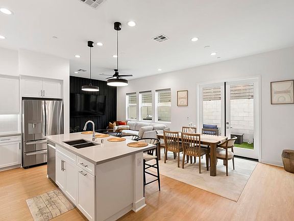 Walk into this stunning, modern 2-story townhome built in 2023 and discover your dream home! With soaring 9' and 10' ceilings and elegant custom wall paneling throughout, this residence blends style with functionality. The spacious primary suite boasts two large custom walk-in closets, offering both luxury and organization. Enjoy a private yard with low-maintenance turf, perfect for relaxing or entertaining. The epoxy-finished garage flooring, custom blinds on the first floor, and owned solar power system add to the home’s thoughtful upgrades. The designer kitchen is a chef’s delight, featuring quartz countertops, flat panel soft-close cabinets, and LG stainless steel appliances including an induction cooktop. Additional highlights include a smart learning thermostat, dual-glazed windows for energy efficiency, keyless entry, and an attached two-car garage. This townhome combines modern design, high-end finishes, and energy efficiency—ready for you to move in and make it your own!
