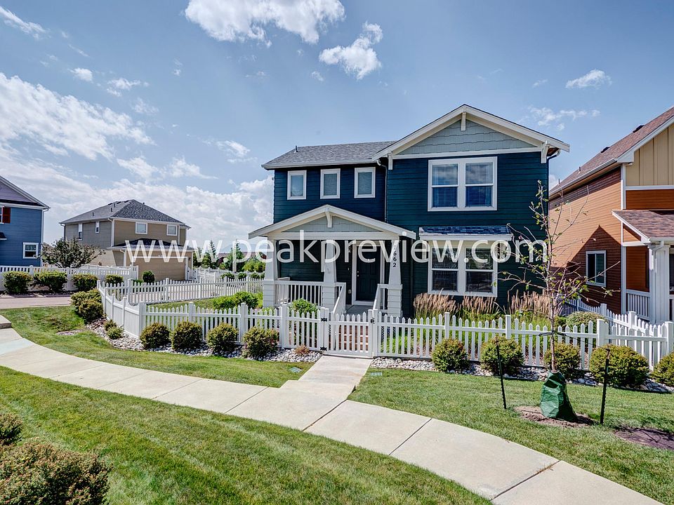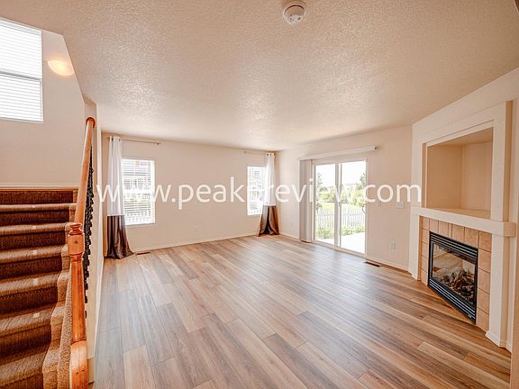 Stylish and bright two-story with great Pikes Peak and Front Range views. Open floor plan, spacious rooms, large eat-in kitchen with island, upper-level loft-style family room. Private corner lot with lawn care service included. One of the very best locations in the neighborhood. Luxury vinyl plank and slab granite throughout. Large 13x20 stamped concrete patio. Excellent condition, well-maintained, great upgrades throughout. Central A/C. 2-car attached garage. Well-kept traditional-style neighborhood with front porches & pocket parks. No pets. Non-smokers only. Minimum credit score of 750 for all adult applicants. 1st month's rent, last month's rent and security deposit due at time of lease.