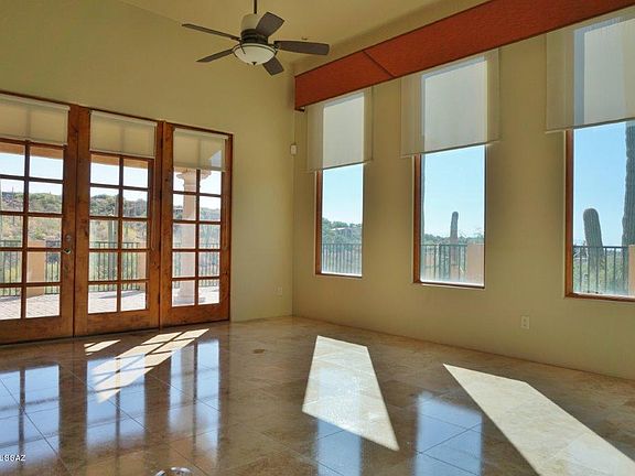 Sunrise, Sunsets and Full on Mountain and City Views from your wrap around back patio! Gated Sin Vacas in the Catalina Foothills home! Upgraded finishes throughout which include remote control window coverings in the Great Room, Granite counters in kitchen and bathrooms, solid Alder Doors , designer fans and Travertine Flooring throughout. Home has a soft neutral color pallet that is warm and classy. Truly a lovely home.