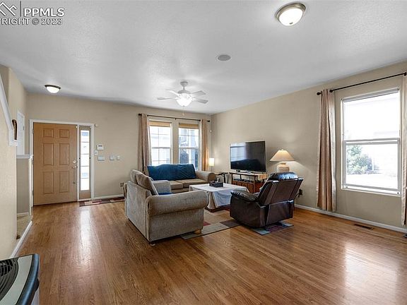 Fantastic corner townhome in The Heights at Cross Creek! This property boasts a two-story floor plan with high ceilings and ample natural light, providing an airy and spacious living experience. As you enter, you are welcomed into the living room with a serving window to the eat-in kitchen. The kitchen features modern appliances, plenty of counter space, and ample storage, making it a perfect place to entertain family and friends. Upstairs, you will find three generously sized bedrooms that provide plenty of space for storage and personalization. The primary bedroom features vaulted ceilings, crown molding, and an ensuite bathroom, making it the perfect retreat after a long day. One of the highlights of this property is its location across from a beautiful park, offering a range of amenities such as a children's playground, soccer field, and a pavilion that has public restrooms and is rentable for parties. Additionally, for those seeking adventure, the park also features an organized BMX track! Conveniently located close to several military bases, including Fort Carson, Peterson Air Force Base, Peterson Space Force Base, Schriever Air Force Base, and Cheyenne Mountain complex. This townhome is perfect for those who desire modern living in a tranquil suburban setting. With its prime location and exceptional amenities, this is an opportunity you don't want to miss. Recent updates include hard-wired smoke detectors installed in every bedroom, Combination Smoke/CO detectors installed in the second-floor hallway and on the first floor, all fill valves for toilets have been replaced, and a new hot water heater was installed 18 months ago, providing reliable and efficient hot water for your daily needs.