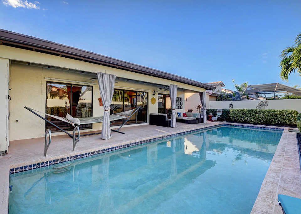 STOP; LOOK NO FURTHER; YOU ARE HOME. ONLY 3 3/2+ Pool & 2 car garage priced this low! AMAZING POOL/YARD. YOUR FRIENDS UP NORTH WILL BE ALL JEALOUS WHEN YOU SEND THEM PICTURES OF YOU DRINKING PINA COLADA's poolside in January! , privacy & low HOA dues. Garden view on a heated 40' pool & hot tub spa as its focal point. Kitchen w/ full granite backsplash, SS appliances, maple cabinets and hardwood floors. Central Boca Raton, near Boca Towne Center; Macys, Neimans, Nordstroms, Saks plus 175 area restaurants. Move-in ready, just bring your clothes. Walking distance to shopping, houses of worship, and Del Prado elementary school. Because of the lack of inventory there is an overwhelming demand for this home.3 year lease restriction.
