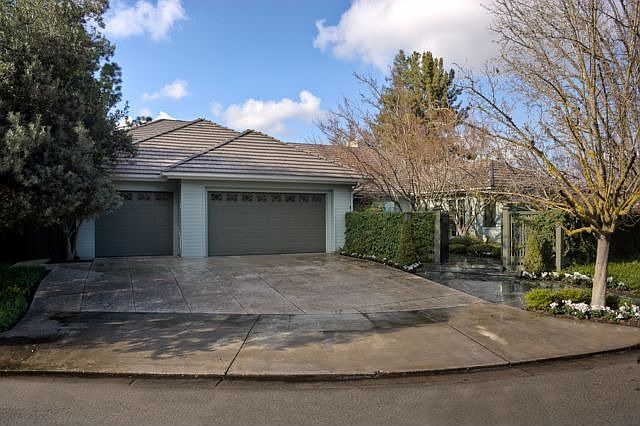 Located on one of the most coveted cul-de-sacs in Northwest Fresno, this distinctive property offers sweeping views of the San Joaquin Country Club's 10th fairway and San Joaquin River and foothills. The walled, ivy-lined front courtyard encloses an idyllic, heated pool & meandering pathway of rare North Carolina blue slate. Fine architectural elements include elegant crown molding, extensive built-ins, expansive dual-paned windows, and discreet storage solutions. Immaculately maintained and remodeled in 2000, this estate offers over 4,100 square feet of living space and includes 4 bedrooms, gracious formal rooms, koi pond and a multi-level rear patio spanning the entire length of the home. An insulated, air-conditioned three car garage offers golf cart storage for the neighboring country club as well as convenient cabinets, sink and half bathroom. This one-of-a-kind estate combines superior construction and design with the privacy of uninterrupted views that should not be missed.