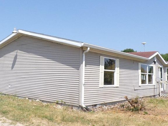 Manufactured home with 4 bedrooms, 2 baths. Private full bath off of primary bedroom. Open kitchen and dining room. 3 additional bedrooms and a full bath on the opposite end of the home. Located on 5.9 acres with room to build a garage or pole barn. Property is owned by HUD and EHO (Equal Housing Opportunity).