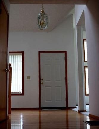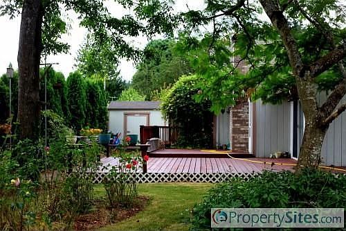 Open hardwood entryway w/oak staircase, skylights & high ceilings. Huge 21'x12' master bedrm & bath on main floor. Master bath boasts a walk-in closet, jaccuzzi tub & separate shower. 2 bdrms upstairs w/storage units in each room. FR is just off kitchen w/beautiful brick fireplace. Huge private fenced backyard with English garden, shed & deck. Central air & new roof