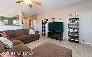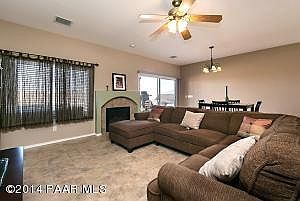 Pronghorn Ranch Popular ''Tucson'' Plan with Large .28 Acre View Location! Brand New Exterior Paint with Nice Covered Front Porch plus Covered Rear Patio with Private Outdoor Spa! 1530 SqFt, 3BD/2BA/2GAR, Tiled Foyer, Kitchen, Dining and Great Room with Cozy Fireplace. Upgrades Include: Designer Lighted Ceiling Fans, Refrigerator, Washer & Dryer Included, Interior Laundry Room, Large Rear Yard Green Lawn with Sprinklers, Apple Tree, Rose Bushes, 8'& 4' Gates to Large Yard & Large Matching Outdoor Storage Shed.Master Bedroom with Dual Sinks, Clear Glass Shower, Oval Garden Tub, Walk In Closet + Linen Closet. Kitchen with Closet Pantry, Dining Counter & Nook/Dining Area. Large Paver Extended Driveway & Patio, Security Front Door, Designer Interior Paint, Gorgeous Views of the Mingus Mtns!