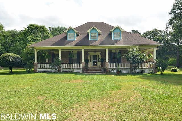 Beautiful country setting with a great location! 10 minutes to the beach and 5 minutes to Foley. Property sits on 9.5 acres and has a 5 stall horse barn, 1 bedroom 1 bath apartment, pond and large home with beautiful oaks and back deck and cross fencing for the horse pastures. Seller built this home himself and foundation and frame were built to last. 3 AC units all brand new.