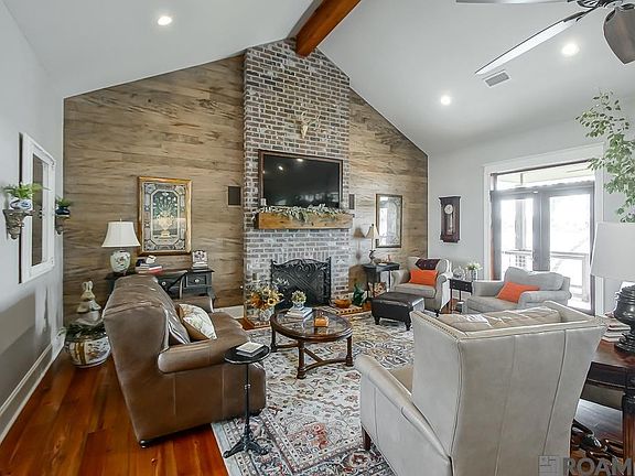 Welcome to luxury living on the beautiful False River! This custom home has it all! As you step through the grand foyer, you are greeted by soaring cathedral ceilings adorned with exposed beams. The large living room has a fireplace and an open dining area. The heart of this home has a gourmet kitchen that boasts granite countertops and a spacious pantry, seamlessly flowing into a dining space perfect for entertaining. The first floor accommodates a serene master bedroom with an impressive walk-in closet and an en-suite bathroom with a luxurious walk-in shower. Also, on the first floor, is a home office The basement includes 2 bedrooms, each pairing en-suite facilities, offering privacy and ease. In addition, a workout room could be used as a fourth bedroom. Your outdoor oasis awaits with a screened-in outdoor patio and in-ground pool, complemented by a fire pit, pier, and boathouse. To top it off, this home has a fully fenced backyard full-house generator! A must-see!