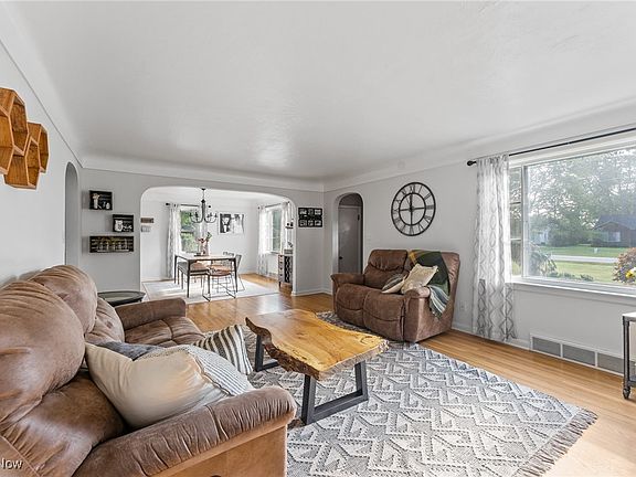 This is your opportunity to own this charming 3 bedroom, 1 1/2 bath brick Cape Cod with large 2-car garage nestled in Poland Township!! Open the door to the foyer and step into the gorgeous living room with a fireplace flooded with natural light, hardwood floors open to the dining room, and a beautifully updated kitchen featuring granite countertops, built-in appliances, undercabinet lighting, pantry and a breakfast bar perfect for entertaining. There is a 1st floor bedroom with hardwood floors, good closet space, and just a step from the full bathroom that rounds out the first floor. Walk up to the second floor, which has 2 oversized bedrooms boasting great closet space and storage hardwood floors and their own 1/2 bathroom. The partially finished basement has extra living space to work out, an in-home office, a rec room with a fireplace, and a large laundry room with epoxy stone flooring. Large storage area on opposite side with barn door opening. 2 car garage with walk-up 2nd floor, built-in shed/workspace that opens to a large attached patio overlooking the beautiful yard. Conveniently located minutes from shopping, restaurants, schools, and parks. This home is so adorable and well maintained, you will be impressed. CALL TODAY BEFORE IT'S GONE!!!!