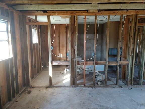 Totally gutted home needs put back together. Half the work is done! Great house to flip, rent, or owner occupy. Two lots with fruit trees in back yard. One lot has 20x30 building. Add another 460 sq/ft of living space if you enclose one of the double garages. Total 2085 sq/ft. Home only ever flooded once after the Dam was opened during Harvey. Has 200 amp electric service, outside a/c unit used one year, fireplace, shingle roof is ten years old. Foundation leveled with lifetime warranty. Treated for mold and termites after Harvey. If you are handy or know someone who is, this is your property. Lots of money to be made for whoever buys this.