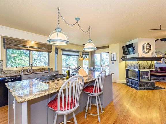 This beautifully maintained and updated home is one of the Pinery's best. Over $100k in recent updates include a spectacular master bathroom with a new waterfall granite vanity, expanded glass shower with multiple body sprays, stand-alone bathtub, heated tile floor, heated towel rack and much more. The upstairs guest bath and main floor powder room were also upgraded. The transformed main floor fireplace is also a central feature on the main floor. All of this is underpinned by consistently high quality and tasteful finishes throughout. With mountain views, an expansive deck and a walk out basement with a theater area and bar, this home is a wealth of reasons to be enamored. Serenely situated on a intelligently landscaped corner lot, this home is ready for its next owner to love it as much as the sellers!