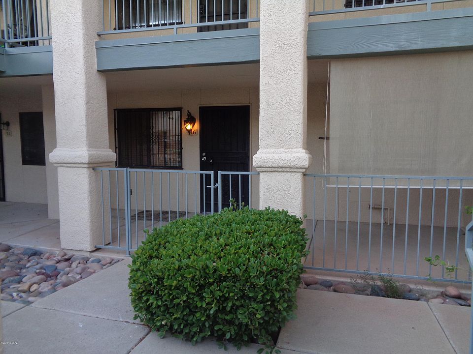 Remodeled kitchen, unit ground floor, Tile throughout except wood in master bedroom. All appliance, refrigerator, micro, dishwasher stay. Picture of refrigerator which will be moved in shortly. Extra bedroom has large storage unit. Walk-in closet in master, closet in hall for stack able washer and dryer. one covered carport but extra parking space. available. Front patio area is fenced and secure for patio furniture and Pets. Quiet complex, close to shopping. HOA fee includes water and trash pickup.