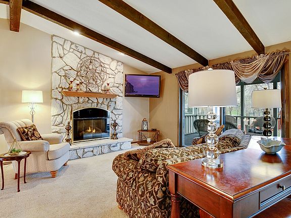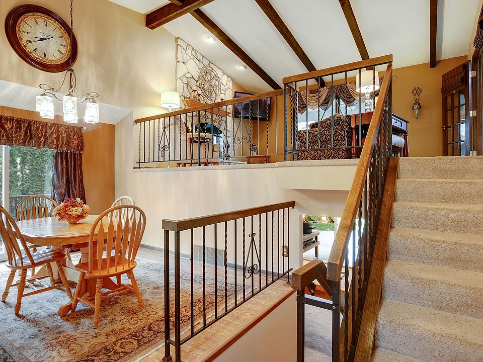Main Level* Welcoming open foyer with closet and garage entry.* Kitchen features ample cabinetry, granite countertops, center island with tiered bar, cook top, wall oven, stem rack, above sink window, recessed plus under cabinet and pendent lighting.* Formal dining room offers pendant lighting and convenient serving area between kitchen and dining room. Easy deck access.Upper Level* Living room features floor-to-ceiling stone gas fireplace with wood mantel, vaulted ceiling and easy screen porch access. * Office with French doors and tranquil views.* Spacious master bedroom with 2 large walk-in closets and private deck access. Vanity area includes sink with private water closet and custom marble/granite updated shower.* Attractive full bath.Lower Level* Family room highlights floor-to-ceiling brick wood burning fireplace with wood mantel, built-in shelving, heated tile floor and patio access.* Adjacent wet bar with granite countertop and matching backsplash with decorative tile finish, vessel sink, full refrigerator, pendant and recessed lights.* 2 bedrooms on one level.* 3/4 bath with tile floor, tiled walk-in shower stall and beautiful granite vanity. Basement* Finish for nearly 2900 sq ft.Additional* Screen porch with ceiling fan and deck access.* All new carpet.* Walk out to large concrete patio.* New drain tile, sump pump, and hot water heater.* Upper level wrap around deck.* Expansive fully fenced flat backyard. All information deemed reliable but not guaranteed.