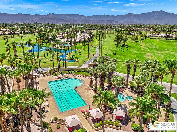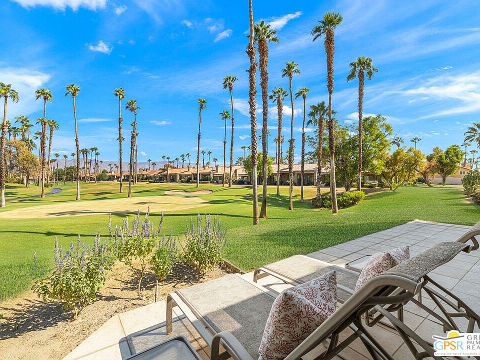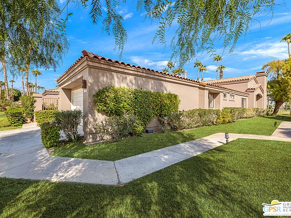 EXCEPTIONAL opportunity to own and enjoy a special home perched atop the fairway at Palm Valley Country Club. The sought-after "Willow" floor plan is the largest in the club with 2,489 square feet, 3 ensuite bedrooms, 3.5 baths, and architectural interest throughout. The club's flexible SHORT TERM RENTAL rules are notable, especially for investors. VIEWS are another plus! Loving the large patio with built-in barbecue overlooking the fairway. There is a private courtyard on the opposite end of the home as well. This home's position in the middle of the community is a plus on many levels including the absence of road noise. Formal living with fireplace + custom water feature and wet bar plays beautifully with the flow onto the patio. The skylight and beamed/vaulted ceiling are highlights of the formal dining room with built-in buffet. Take the Matterport VIRTUAL TOUR for a better sense. Onto the Chef's kitchen which is a destination with its size. There is also a walk-in pantry and large breakfast area opening to the patio. Bedrooms enjoy a nice separation with the ensuite Primary tucked away behind double doors with dual vanities, separate tub and shower, custom walk-in closet, and walled + gated courtyard. Guest Bedroom #2 features a vaulted ceiling, ensuite bath, and dual vanities. A large built-in desk with cabinets is a highlight of Guest Bedroom #3 with ensuite bath. The utility room with built-ins is connected to the 2-car garage. Powder bath too! Members and their guests at Palm Valley Country Club enjoy 36 holes of golf designed by Ted Robinson, Junior plus numerous social + recreational amenities including 16 tennis courts, 8 pickleball courts, junior Olympic sized lap pool with cabana area, and 46 pools and spas throughout the club. The best of Palm Desert is a short hop away!