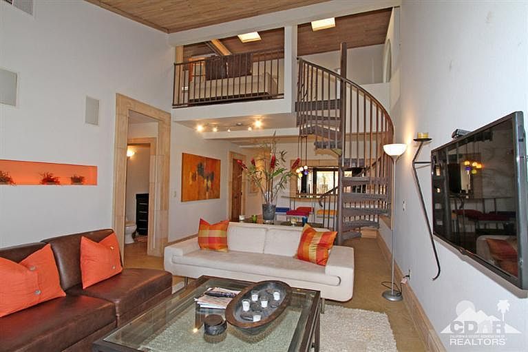 Contemporary remodel with a cool California vibe in the heart of Palm Valley. Fantastic designer upgrades throughout. Designed with a master suite on the main floor, and spacious loft with bedroom and sitting area. Luxuriously redesigned and appointed, the previous owners were decorators who used every inch wisely - spacious storage, custom lighting, stunning cabinetry, granite counters, upgraded appliances. From the minute you walk in the custom doors, you will fall in love with the high end look and decor. High end Designer furnishings included. Master suite has vaulted french doors, custom walk in closet added, beautiful built-ins, bamboo ceiling. Contemporary floors and artisan tile work throughout. Baths have been elegantly remodeled. Ideal end unit location next to greenbelt and pool, overlooking the championship course. Custom entertainment systems, finished garage with full laundry, epoxy floors. Every inch has been designed to maximize luxury and utility. It's a 10!