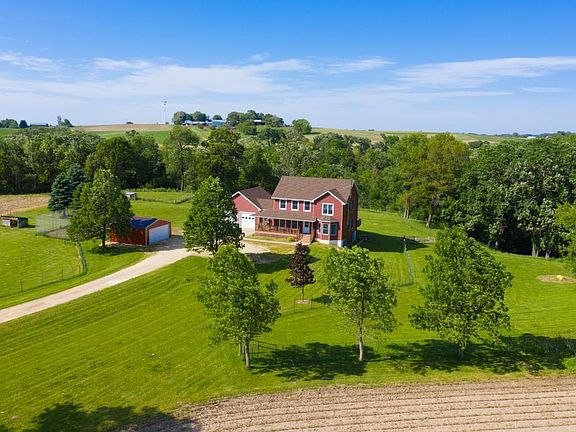 Nice 4 bedroom, 4 bath two story home with attached 2 car garage. 20 x 28 barn, 20 x 20 metal garage. Hrdwd floors, main floor laundry, finished lower level. 3 animal pastures, 1/8 acre garden with greenhouse. Wood stove