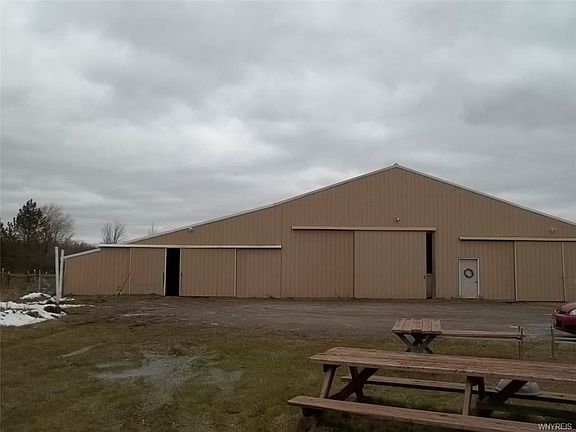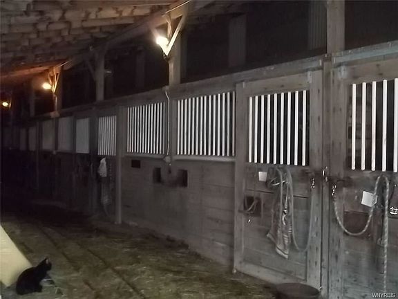 40'x100' indoor riding arena. Sand base, 16' ceiling, ample lighting. 35x100 west side extension has 9 - 10x10 box stalls, 2 - 10x12 box stalls, 6 - 4x6 miniature horse stalls, 15' wide walkway, storage and tack room. 25x100 east side extension has 10 - 10x10 box stalls and 15' wide walkway. 3 exterior steel gated corrals. 3 fenced pastures with run in sheds. Pond, outbuildings & woods. There is plenty of room to build your new home on this site.