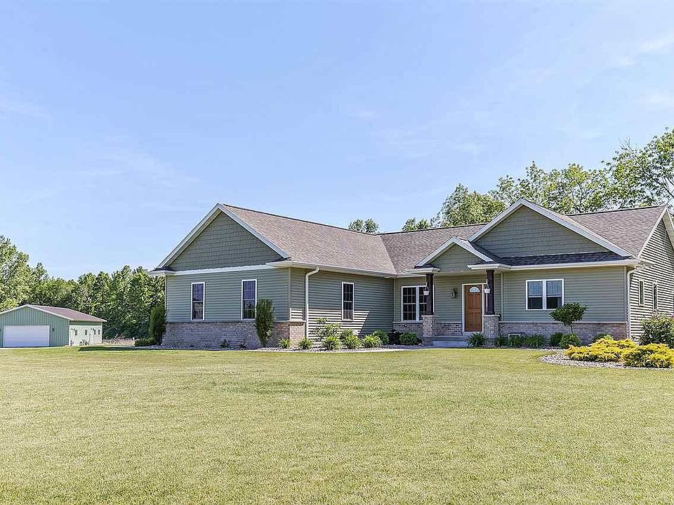 4 Yr Old Home on 4.5 acres. Beautifully maintained walk-out ranch home offers much privacy and features a fish stocked pond plus Jones Creek flowing through the property. Spacious living room with corner fireplace. Applianced kitchen with custom oak cabinets, hardwood floor and dinette with doors to wrap-around deck. Main level master with trey ceiling, walk-in closet with adjacent laundry room and doors to deck. Full walk-out lower level awaits finishing touches and boasts a finished 3rd bedroom and is plumbed for a full bath. 2.5 car att garage + 30x56 det gar with heated workshop