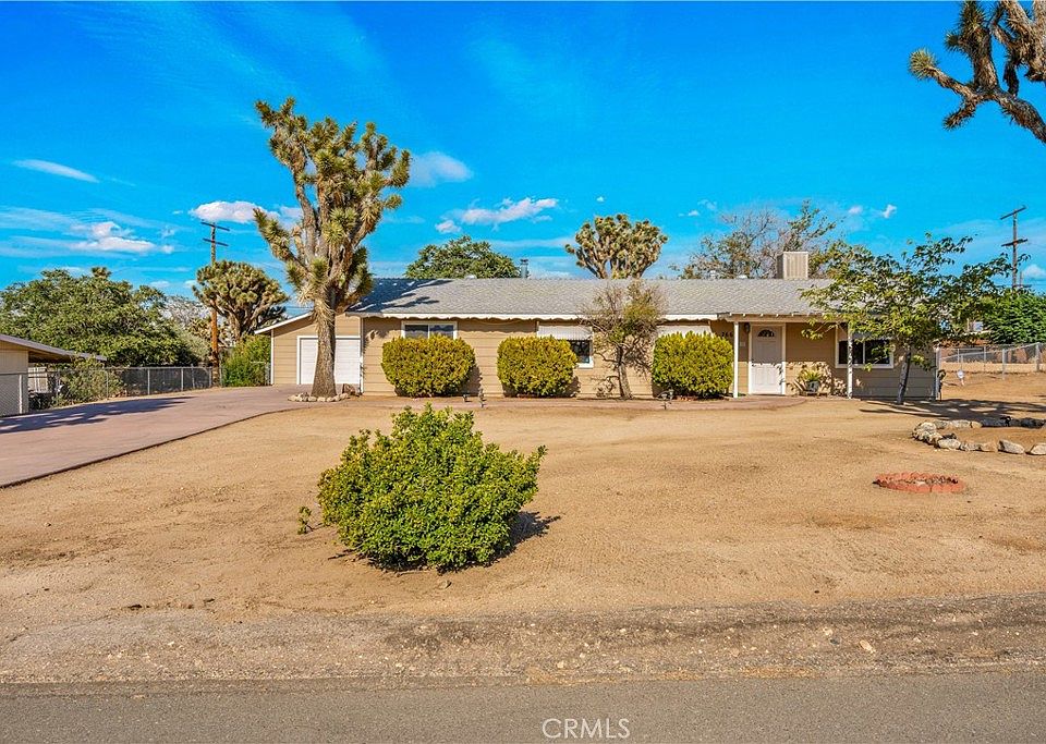 Welcome to this charming 2-bedroom, 1-bath home in Yucca Valley, offering 1,456 square feet of comfortable living space. Inside, you'll find a spacious layout with a versatile bonus room, perfect for a potential third bedroom, home office, or an additional bathroom. A highlight of the home is the large laundry room, complete with a utility sink and plenty of cabinet space. The detached garage offers endless potential as a workshop or creative space and features a 220V outlet along with a durable epoxy and polyurethane coated floor. Step outside to enjoy the inviting backyard, which includes a covered concrete patio with outdoor lighting, perfect for relaxing or entertaining under the desert sky. With ample yard space to customize and enjoy, this property is a great opportunity for homeowners, investors, or anyone seeking flexible space in a peaceful setting.