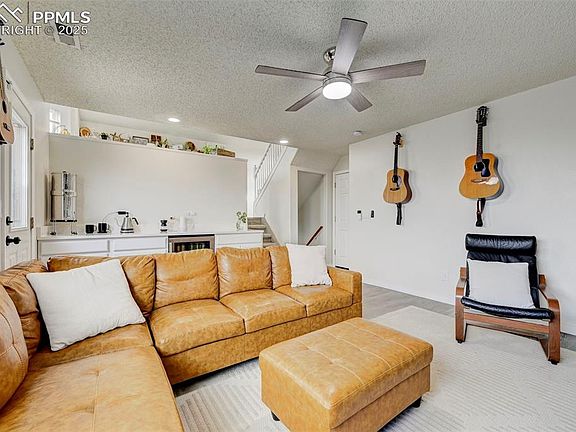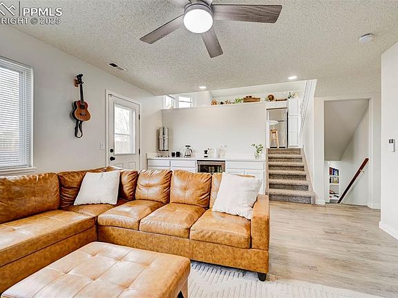 Move-In Ready & Beautifully Updated Home with Pikes Peak Views! Every square inch of this stunning home has been thoughtfully updated! Step into an inviting open-concept kitchen featuring quartz countertops, a spacious island, and brand-new appliances—a new fridge and range (2023) and a new dishwasher (2024). Throughout the home, you'll find luxury vinyl flooring (2024) and plush carpet (2023), creating a fresh, modern feel. The fully finished basement boasts a brand-new bedroom with an ensuite full bath, perfect for guests or additional living space. Enjoy the cozy family room with built-in shelving and a stylish dry bar with a mini fridge—ideal for entertaining! The updated guest bath, modern light fixtures, ceiling fans in every bedroom, and fresh paint throughout add to the home's charm. With a brand-new furnace and AC (2024) under warranty, this home is truly move-in ready. Step outside to your back patio and take in breathtaking Pikes Peak views. Too many updates to list! If you're looking for a beautifully updated home where all the work has already been done, this is it!