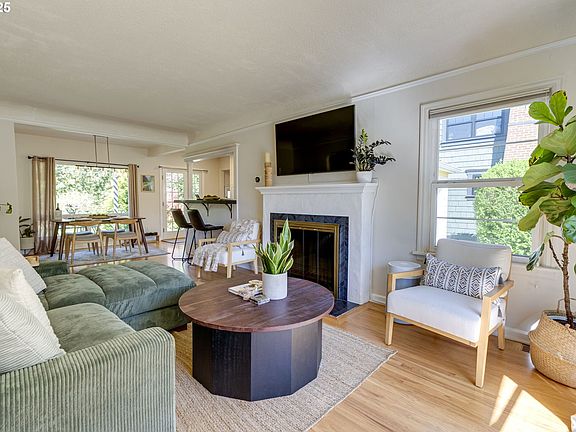 This beautifully updated Sellwood ranch is full of warmth, character, and natural light. Make yourself at home in the stylish living room with its original bay window, coved archway, and welcoming fireplace. The kitchen has been tastefully remodeled with quartz countertops, an eat-at breakfast bar, and plenty of space for prepping meals and gathering with loved ones. The formal dining room offers a picture-perfect view of the garden through its oversized window—ideal for relaxed dinners or entertaining guests. On the main level, you’ll find two spacious bedrooms and a full bathroom, all thoughtfully updated and move-in ready. Downstairs, the finished basement is a true bonus—featuring a generous primary suite with a walk-in closet, plus additional flexible living space perfect for a home gym, media room, or den. Step outside and discover your own private oasis. The lush, fully landscaped backyard feels like a personal park, complete with veggie beds, a well-kept lawn, and both a covered deck and patio—ideal for summer BBQs or quiet mornings with coffee. There’s not a neighbor’s window in site! An attached garage gives you plenty of space for storage and hobbies.Located on a quiet street in one of Portland’s most sought-after neighborhoods-blocks to Westmoreland Park, New Seasons and the shops, cafes, and restaurants along SE 17th. Scenic river views, local parks, and a tight-knit community vibe make Sellwood the perfect place to call home. Come experience the lifestyle this home has to offer—this one’s special! [Home Energy Score = 8. HES Report at https://rpt.greenbuildingregistry.com/hes/OR10198395]