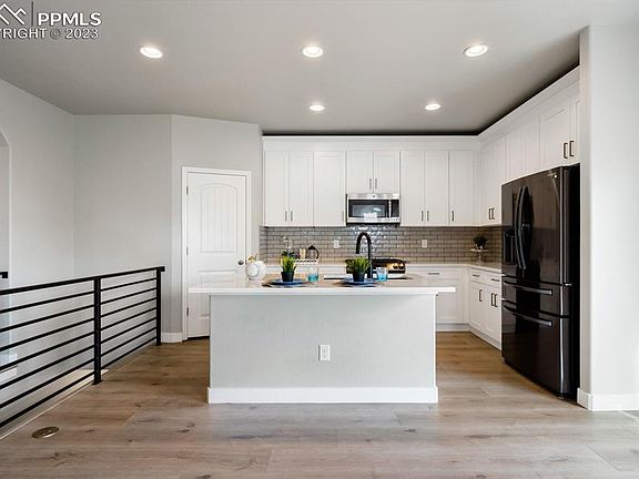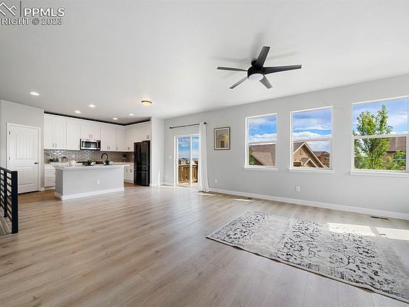 This is it! Everything you’ve been looking for. Stunning and totally remodeled rancher with walkout basement. Everything is NEW, NEW, NEW! Upon entering, you'll be greeted with open-concept living area that is bathed in natural light, courtesy of large windows. Luxury vinyl plank floors guide you through the kitchen and spacious living room with a cozy gas fireplace, perfect for gathering with loved ones on chilly evenings. Gorgeous Pikes Peak views perfectly framed by window next to fireplace. The kitchen features NEW black stainless steel appliances (you will love the custom features in the refrigerator), NEW quartz countertops, NEW white cabinets with ample storage space and large pantry. The master suite is a true retreat, boasting a generous layout, LVP flooring, and an ensuite bathroom that has been completely remodeled with a glass-enclosed shower, and dual vanities, and walk in closet. The main floor also has a secondary bedroom with a full adjacent bathroom that has been fully remodeled. The basement features 9 foot ceilings, a large family room/flex space and two additional bedrooms that provide ample space for family members or guests. Other notable features of this home include air conditioning, a stucco exterior, a two-car garage, a dedicated main level laundry room, a beautiful backyard that has a manicured lawn and mature trees and an extra guest parking spot right next to the home. Located close to parks and green spaces, shopping, and dining, this home combines the allure of modern luxury with the comforts of everyday living. Dream home, Dream Location and Dream Neighborhood!