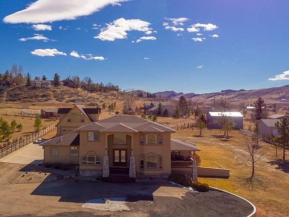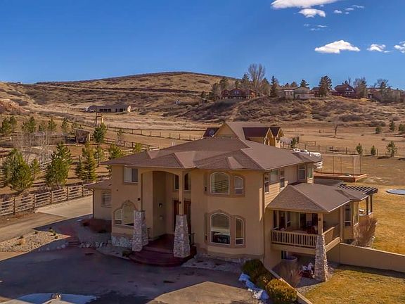 This estate sits on 1.99 acres with detached guest house/apartment. Tucked into the Rocky Mountain foothills yet near shopping, dining, recreation & schools. Interior features main floor office & laundry. 5 bed, 5 bath, 5 car garage plus a detached guest house. Gourmet kitchen, formal dining, 5 piece master suite, spacious bedrooms, finished basement, wet bar, safe room, gym & large family room. Call for a detailed list of features, a floor plan or to show.