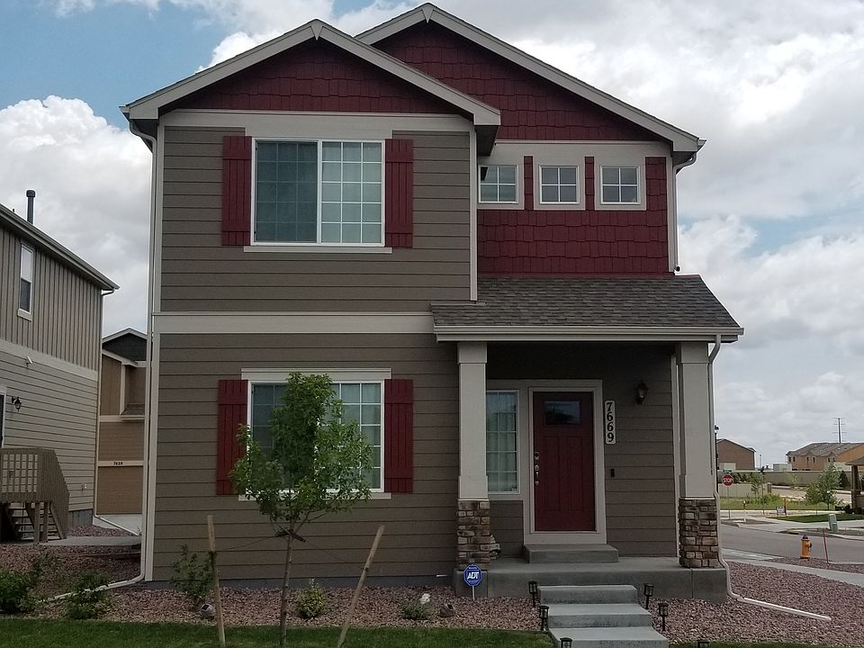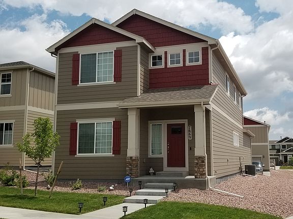 True 3D Virtual Walkthrough Tour! Two story home with finished basement! Your option to put in side yard and fence! Make it yours! Open concept living with a well laid-out floor plan and large rooms throughout. Wood floors in entryway, dining room and kitchen area. Storage and more storage! Separate laundry room conveniently located on upper level close to bedrooms. Includes air conditioning and a whole house humidifier. Quick access to major thoroughfares, shopping and hospitals! Upper Level has 3 well sized bedrooms, 2 large bathrooms with double vanities and separate laundry room. Master bedroom and bath have great views of Pikes Peak and comes with luxury height vanities and private toilet area. All bathrooms come with tile flooring and accent tile in the showers and on the vanity surrounds. Main level has large great room with access to a covered side patio through a sliding glass door. Get work done in the study/office located right off the main entrance with french doors for privacy. A half bath is also conveniently located on the main level for guests. Kitchen amenities include matching Samsung stainless steel appliances, 42 inch upper kitchen cabinets for extra storage, a separate corner pantry, a large island and granite counter tops. Entertain guests in the dining area that fits a large table for at least 8 people. Basement level includes 2 large recreation, game, or family rooms. Make it what you want! A large 4th bedroom with a walk-in closet and another full bathroom complete this level. Again, more storage closets! Additionally, there is an extra tall attached garage with more storage and included garage door opener! Enjoy the green space located in front! Your option to put in side yard and fence!