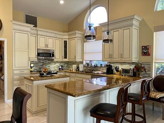 Move right in -nothing to do. Upon entering this spacious and bright home, you are greeted with open spaces and vaulted ceilings w/views of lake & heated pool. Many upgrades such as granite counter tops w/island new refrigerator and dishwasher. Tile backsplash + desk w/granite top designed for home office. Special features are, both bathrooms have been updated w/lighting fix, granite surfaces & frameless shower door. Lg Master suite has 2 fitted walk-in closets/laminate floor. Lake views from large windows are very relaxing. Roof replaced in 2006, A/C replaced in 2019, HW heater less than 2 Years ago, pool pump-1 year ago and pool heater 2016. Don't hesitate, this lovely residence is in a secure community, and you can make this unrivaled environment yours. Show Today.